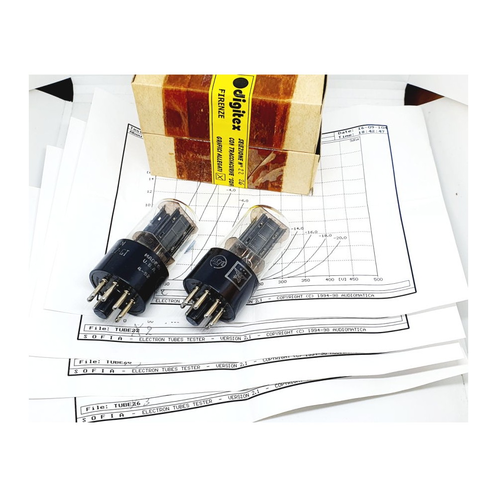 Si tratta di valvole NOS (Nuove da Vecchi Stock non più in produzione) quasi certamente già rodate in fabbrica all'epoca ma prima della vendita vengono da noi Testate una per una, per far ciò utilizziamo il nostro TTA (lo scaldino) che ci permette di riscaldare fino a 20 valvole contemporaneamente ed eseguire poi le misurazioni con il "Characteristic Meter Avo V.C.M. 163" quindi il tempo di riscaldamento sarà lo stesso per l'intero lotto in modo da ottenere numeri relativi precisi ed affidabili per la successiva selezione eseguita con un software da noi sviluppato che confronta tutti i valori di Ip e Gm dell'intero lotto (80 misurazioni totali per lotti di 20 valvole) e ne estrapola le singole, le coppie, i terzetti, i quartetti alle varie tolleranze.
