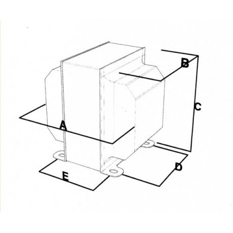 Fi Audio Trasformatore di Aliment E+I da 400VA, primario e Tre secondari a scelta (MAX 6 Fili totali sui secondari) schermo prim/second, calotte nere fili uscenti, Lamierini GO M5/M6 peso Kg dimensioni A=mm 142 B=mm 104 C=mm 124 D=mm 80 E=mm 96