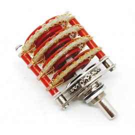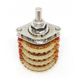 Commutatore Rotativo 4 vie 24 posizioni bloccabile nelle posizioni intermedie CORTOCIRCUITANTE contatti dorati, angolo di rotazione 15 gradi albero mm 6 corpo Metallico Diametro mm 41x38 - profondo mm 45 -- 900mA@220Vac o 4AA@30Vdc su carico resistivo --- COSTRUITO IN ITALIA --- RohS