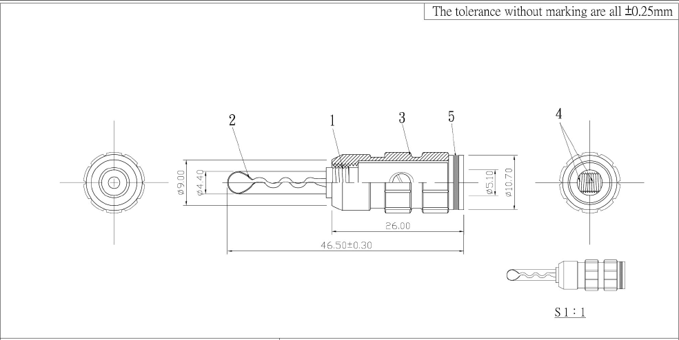 BPX450 Spina a Banana ottone dorato fissaggio cavo con viti (filo max 5 dia)