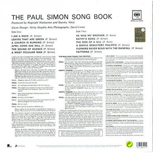 Paul SIMON - THE PAUL SIMON SONG BOOK (vinile) - (P) 1965 Columbia Records (C) 1965, 2018 Columbia / Sony Music Entertainment - cod. 190758351414